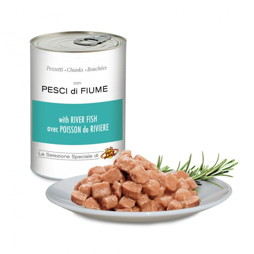 | Poisson de rivière | Viandes, Saumon 5%, Truite 5%, Céréales, Œufs | 8% | 6% | 1% | 3% | 80% | 900 |